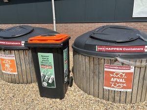 De container staat tussen de molokcontainers van Plastic en Restafval.Dus lever je blikjes en kleine flesjes in en steun het goed doel!